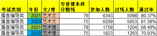陜西播音編導類統考通過率/專業課